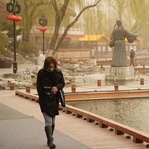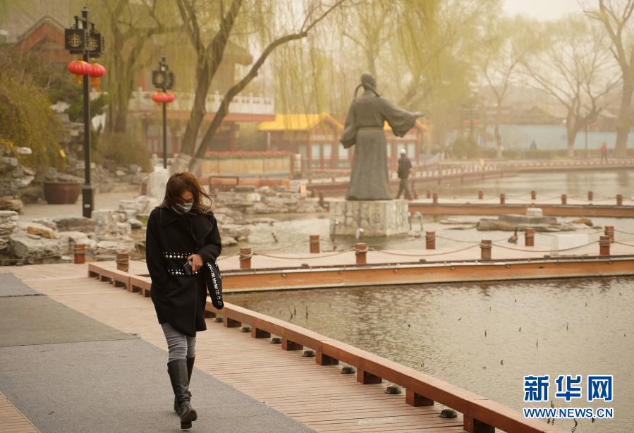 3月15日,市民經過北京西海。當日,我國北方多地出現沙塵天氣。新華社記者 賈浩成 攝