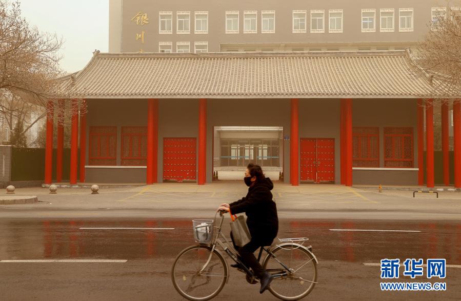 3月15日,在寧夏銀川市興慶區文化街,市民在沙塵中騎行。當日,我國北方多地出現沙塵天氣。新華社記者 楊植森 攝
