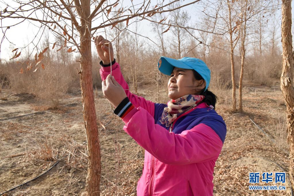 “種下的不只是樹,更是希望,期盼來(lái)年春風(fēng)再綠河?xùn)|岸。”望著車爾臣河?xùn)|岸這片即將發(fā)芽的梭梭林,停不下來(lái)的帕提古麗憧憬道。