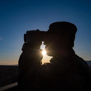 拼版照片:上圖為十多年前,馬軍武與妻子張正美在巡邏途中(翻拍照片,4月10日攝);下圖為馬軍武和妻子張正美抱著孫子在哨所前合影(4月9日攝)。