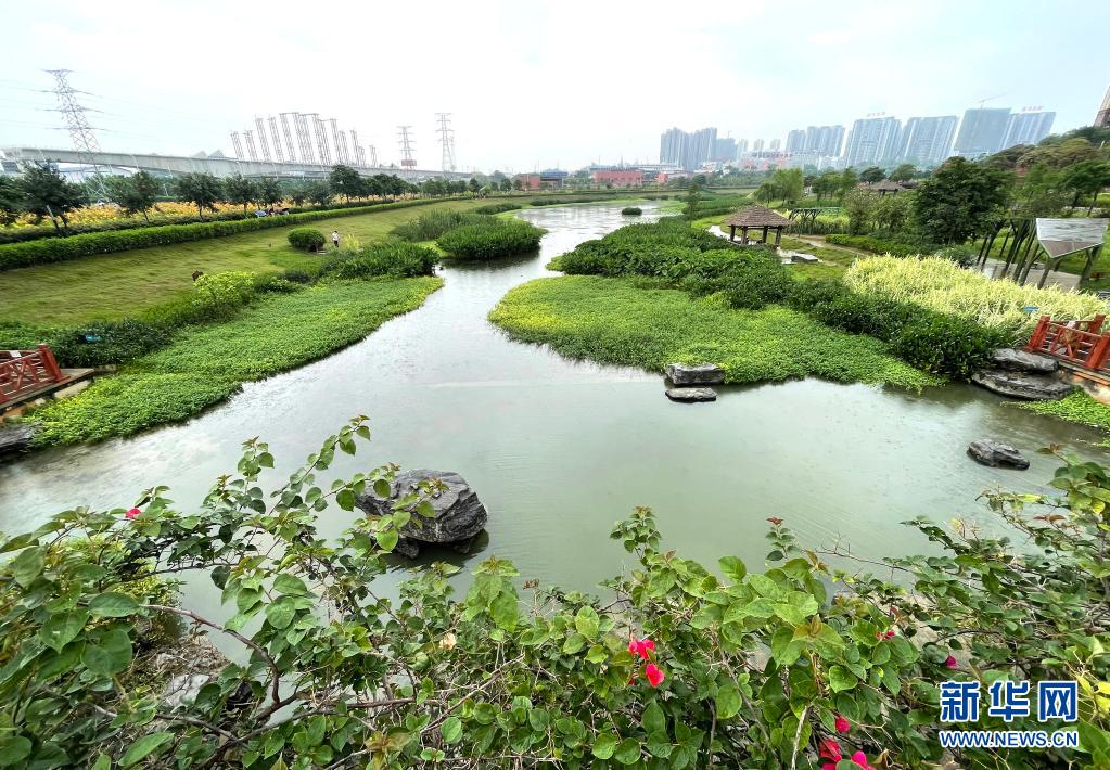 立夏時節,廣西南寧市那考河濕地公園內草木吐翠、鮮花斗艷,一派繁茂景象。