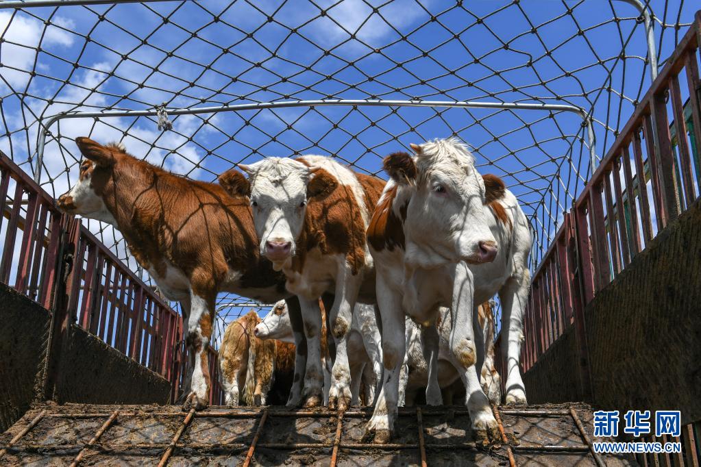 這是6月1日拍攝的開(kāi)魯牛市物流廣場(chǎng)上已裝車的活牛。