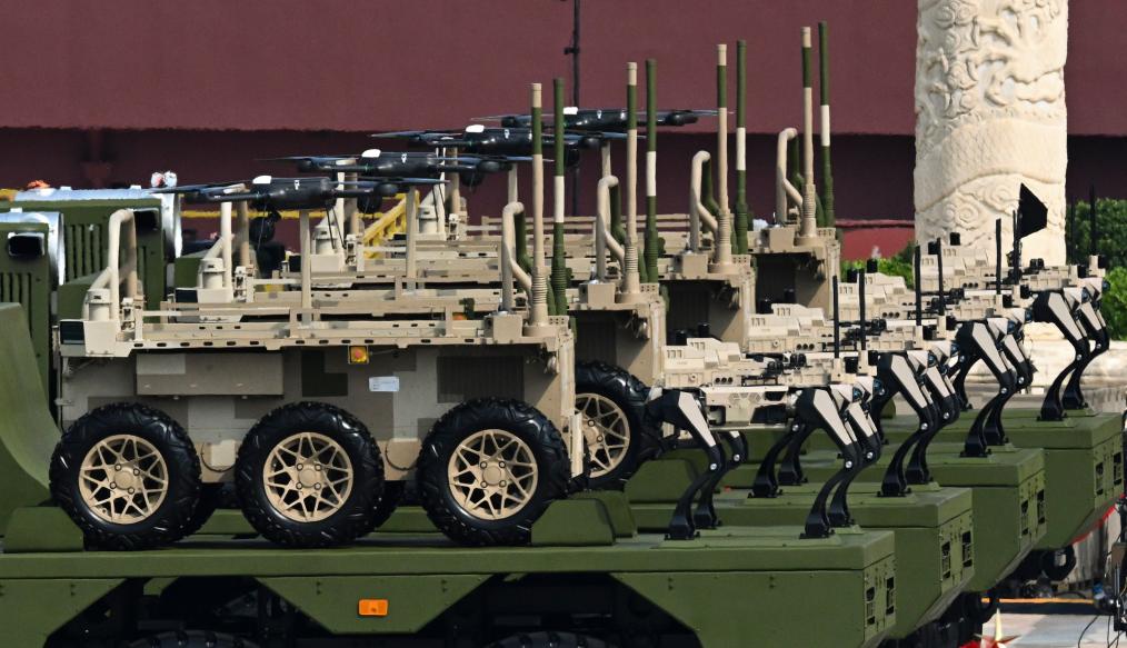 9月3日,纪念中国人民抗日战争暨世界反法西斯战争胜利80周年大会在北京隆重举行。这是陆上无人作战方队的装备。新华社记者 李嘉南 摄