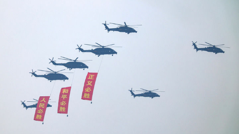 9月3日,纪念中国人民抗日战争暨世界反法西斯战争胜利80周年大会在北京隆重举行。这是舰载机梯队接受检阅。新华社记者 郑焕松 摄