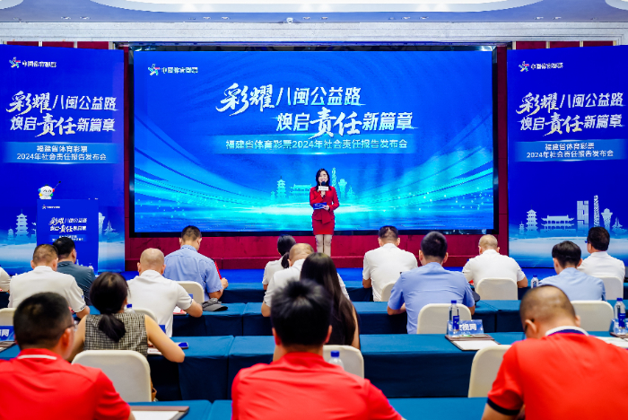 8月27日,《福建省体育彩票2024年社会责任报告》发布会在福州举行。发布会以“彩耀八闽公益路 焕启责任新篇章”为主题,通过线下仪式与线上直播联动方式,面向社会公众发布《福建省体育彩票2024年社会责任报告》(以下简称《报告》),全面展示福建体彩过去一年在责任彩票建设领域的实践与成果,这也是福建体彩连续八年向社会公众发布年度社会责任报告。福建省体育局二级巡视员、财审处处长朱耀明,省财政厅综合处二级调研员蔡荔玲,福建省体育彩票管理中心党委书记陈敏,福建省公安厅治安总队、省通信管理局、福建省企业信息中心相关领导等,数家媒体、多方代表共同见证了这一重要时刻。
