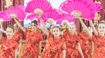 这是2月13日在马来西亚雪兰莪州举办的“中国白·德化瓷”专题展会上拍摄的“荔兴南国”宴会瓷具。
