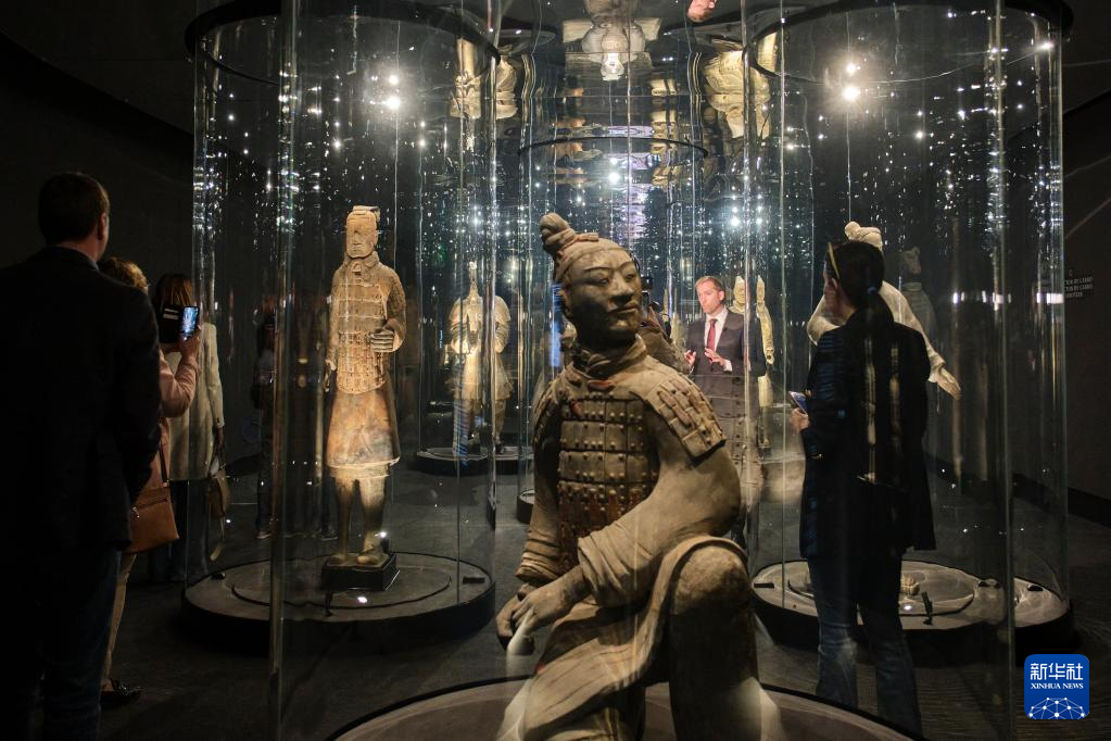 “中国秦汉文明的遗产”展从3月29日至明年1月28日面向公众开放。展览分为三个展厅,分别展示了秦始皇统一中国的历史、秦始皇陵以及神秘的兵马俑。博物馆通过光影、音乐、甚至气味方面的精心设计,使用先进科技手段打造出沉浸式的展示空间。