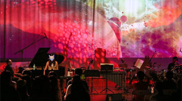 这是7月13日拍摄的浦东美术馆镜厅灯光秀。