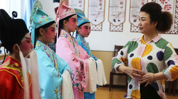 创办“桃坪羌族文化博物馆”的王嘉俊老人在演示羌族“腰磨”的用法(9月13日摄)。