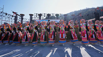 2月21日,海南定安县后山村的村民在村口观看琼剧。