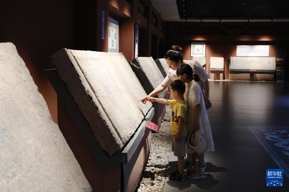 6月8日,人们在山东省滕州汉画像石馆参观。