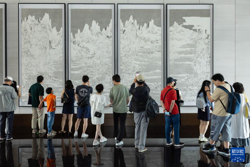 6月16日,市民在上海世界会客厅内欣赏艺术作品。