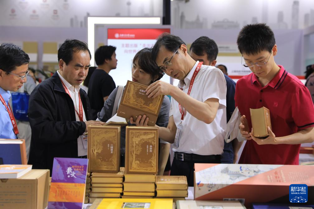 6月19日在第三十届北京图博会上拍摄的“中国作家馆”展出图书。