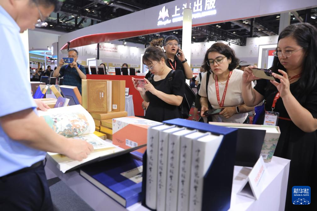 6月19日,读者在第三十届北京图博会“中国作家馆”翻阅图书。