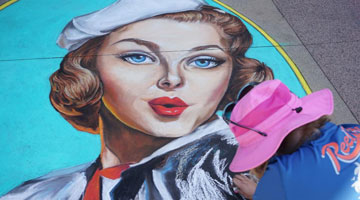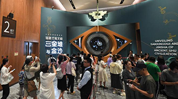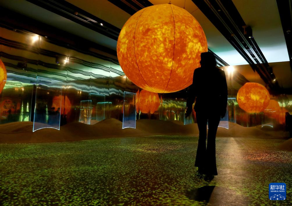 7月3日,参观者走在马可·波罗奇迹之旅展厅内。
