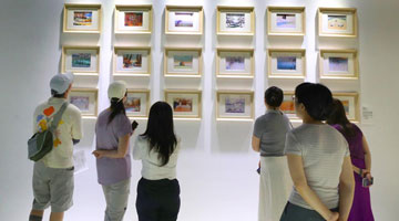 7月19日,邱恒勇展示他创作的木活字印刷的百福图。