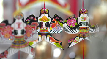 一名老师带着几名孩子在广西来宾市象州罗秀镇纳禄村学习扇面制作(10月10日摄)。