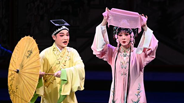 10月28日,来自山西省运城市稷山县的演员在展演现场表演鼓乐节目《高台花鼓》。