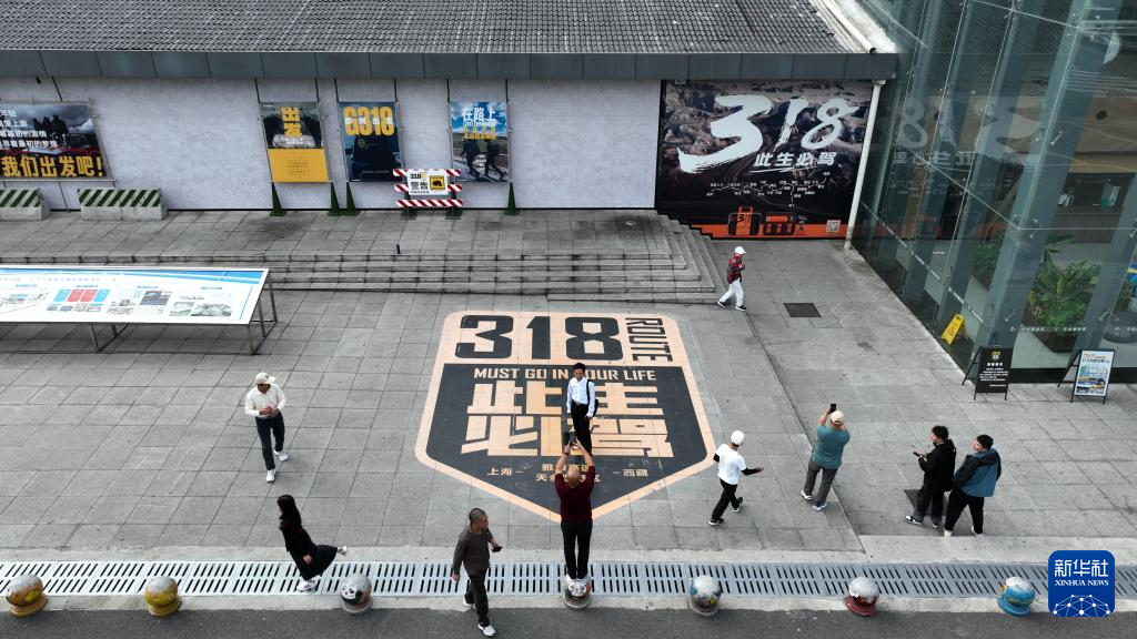 10月27日,游客在位于四川省雅安市的318公路文化体验馆参观留影。