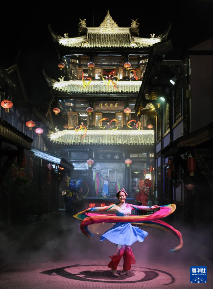 11月5日拍摄的实景演出《蜀道盛世》中的“亮花鞋”。