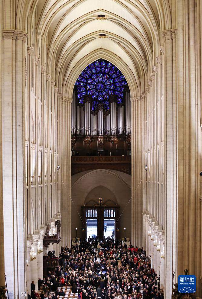 法国7日和8日在位于塞纳河畔的巴黎圣母院举行仪式,庆祝2019年失火的巴黎圣母院经过5年修复后重新开放。