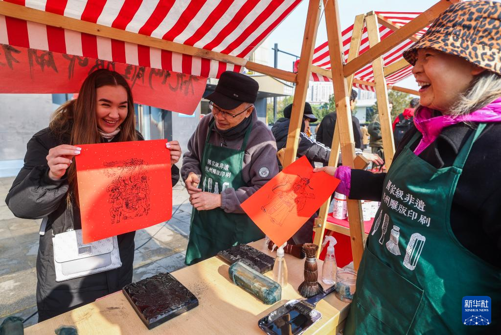 当日,“宋韵思潮 寻迹匠心”杭州非遗年货节在杭州市上城区望江街道日信国际广场开市,现场设置非遗、文创、游艺、民俗、群艺五大板块,汇集非遗项目展示体验,穿插民俗文艺表演,同时推出各地年节美食品尝展销,营造杭州特色的市井年味,让市民游客在欢乐喜庆的气氛中感受年味。