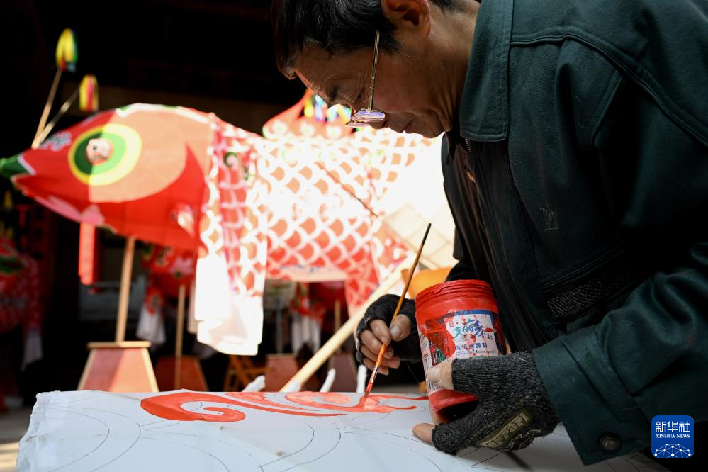 1月6日,在安徽省黄山市歙县北岸镇瞻淇村,村民在制作鱼灯。