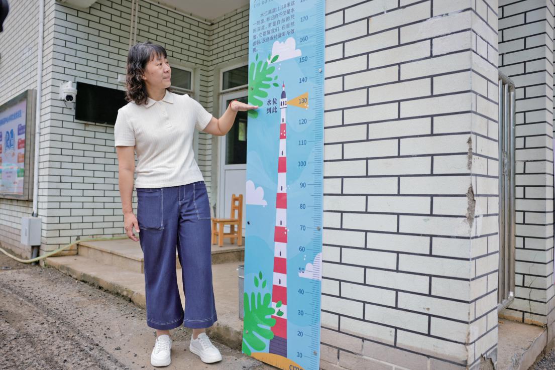 走在校园里,记者发现有四处水位标记。“我们特意保留了四个地方的洪水痕迹,首先是校门口,当时这里的洪水深度约有1.3米。其次是教学楼大厅,这里的水位大约40-50厘米。还有一处是图书室,这里水位也有四五十厘米,损毁了书籍。我们在这里设置水位标记,是想告诉孩子们:水可以模糊文字,但不能模糊我们的信念,我们要坚持责任、不断思考。”