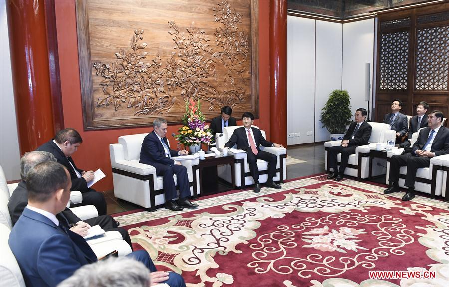 BEIJING, April 28 (Xinhua) -- Senior official of the Communist Party of China (CPC) Meng Jianzhu met with Deputy Prime Minister of Uzbekistan Rustam Azimov Thursday, stressing cooperation on the Belt and Road Initiative.