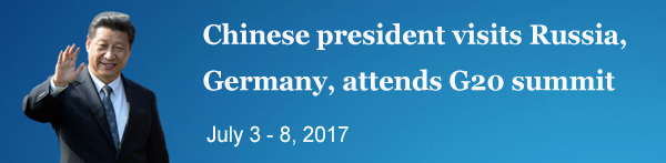 Xi paid a state visit to Germany at the invitation of German President Frank-Walter Steinmeier and Chancellor Angela Merkel in Berlin and attended the 12th G20 summit in Hamburg on July 4-8.