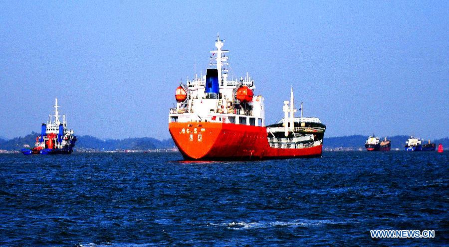 A cargo ship loaded with oil and gas anchors in the sea area of Maoweihai of south China's Guangxi Zhuang Autonomous Region, Dec. 18, 2017. By making full use of its geographical location and the potential ofcoastlines and border areas, Guangxi capitalized on its advantages and played a bigger role in the Belt and Road Initiative. Through ports and the Beibu Gulf Economic Zone, the trade cooperation between Guangxi and ASEAN countries gained great prospects.(Xinhua/Zhang Ailin)