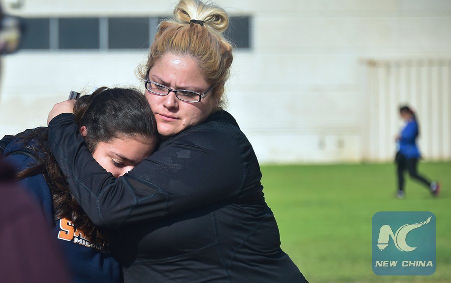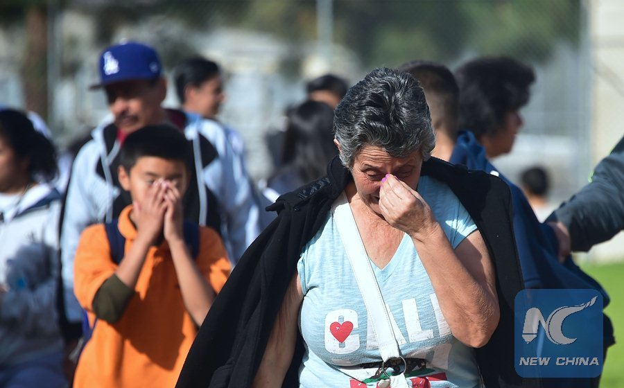 A student and parent react while leaving campus at Salvadore Castro Middle School in Los Angeles, California on February 1, 2018. (Xinhua/AFP PHOTO)