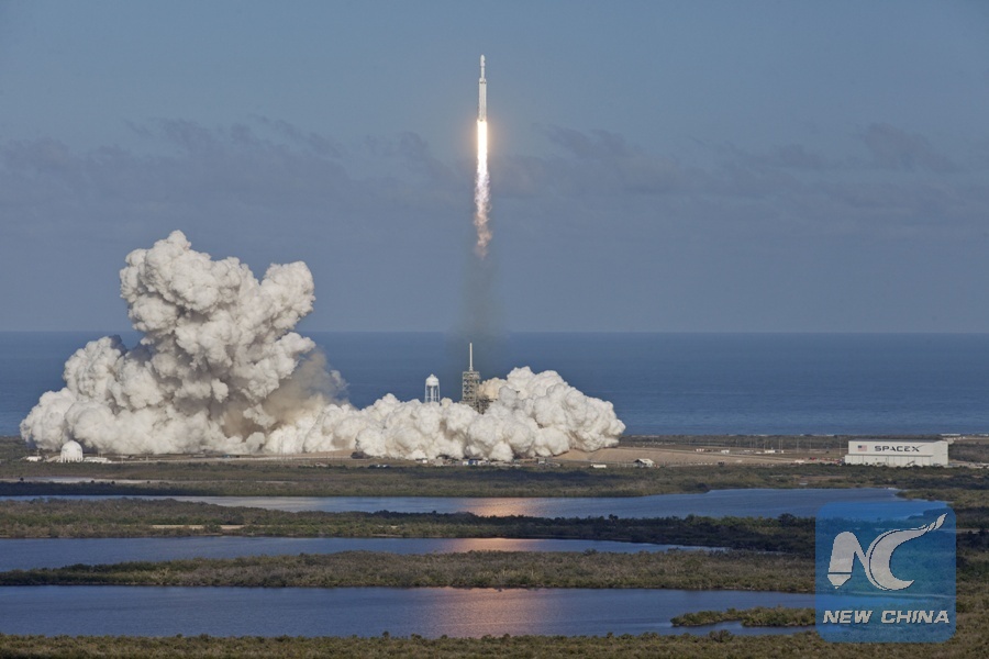 A SpaceX Falcon Heavy rocket lifts off from Florida's Kennedy Space Center, the United States, Feb. 6, 2018. (Xinhua/NASA)