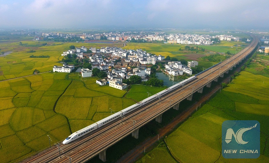 A bullet train drives in Liuzhou City, south China's Guangxi Zhuang Autonomous Region, July 15, 2017. (Xinhua/Li Xin)