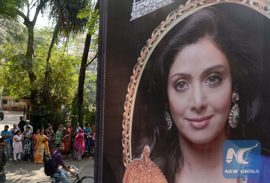 DUBAI, Feb. 26 (Xinhua) -- A-rated Bollywood actress Sridevi Kapoor, aged 54, drowned in her hotel bathtub Saturday after passing out, Dubai police said Monday.