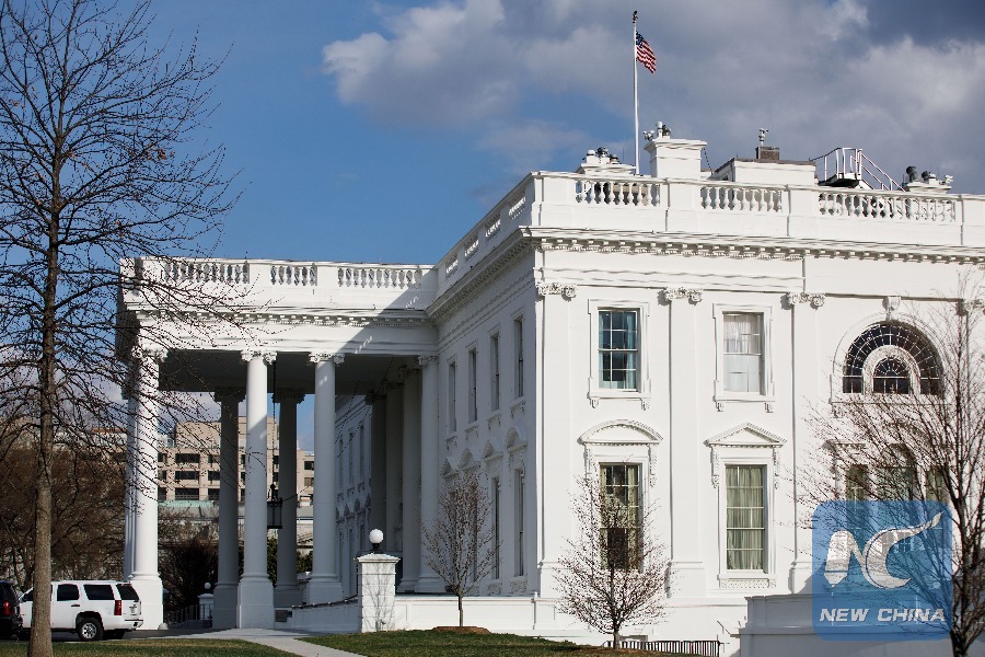 Photo taken on March 8, 2018 shows the exteriority of White House in Washington D.C., the United States. U.S. President Donald Trump on Thursday formally signed proclamations to impose steep tariffs on imported steel and aluminum amid mounting dissent from business groups and trading partners around the world. (Xinhua/Ting Shen)