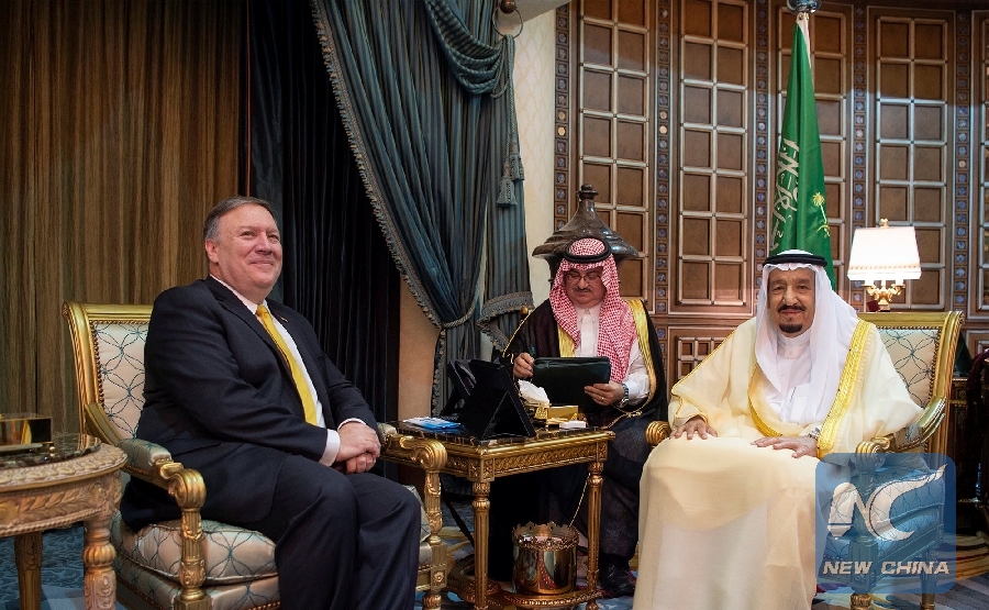 File Photo: U.S. Secretary of State Mike Pompeo meets with Saudi Arabia's King Salman bin Abdulaziz Al Saud in Riyadh , Saudi Arabia April 29, 2018. (Xinhua/REUTERS)