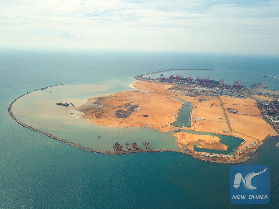 File photo taken on April 19, 2018 shows the construction site of Colombo Port City in Colombo, Sri Lanka. Invested and developed by the China Communications Construction Company Limited (CCCC), Colombo Port City is the project between China and Sri Lanka under the China-proposed Belt and Road Initiative, especially the 21st Century Maritime Silk Road. (Xinhua/CHEC)