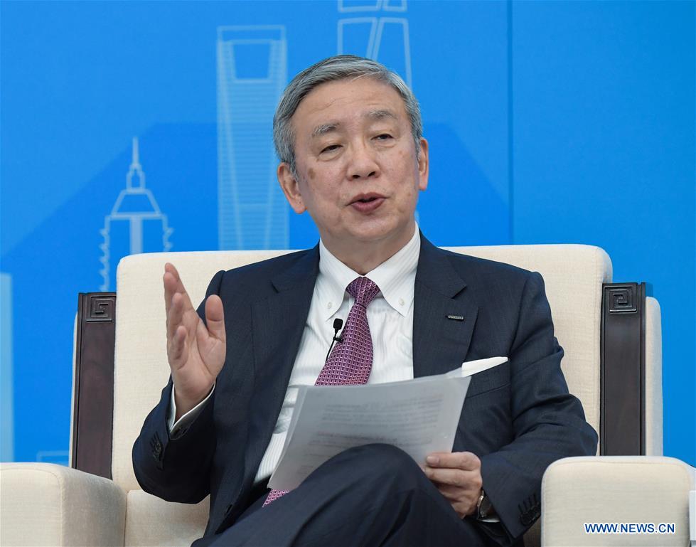 Fumio Tateishi, chairman of the board of OMRON Corporation, speaks at the Parallel Session on Trade and Innovation of the Hongqiao International Economic and Trade Forum in Shanghai, east China, Nov. 5, 2018.(Xinhua/Li He)
