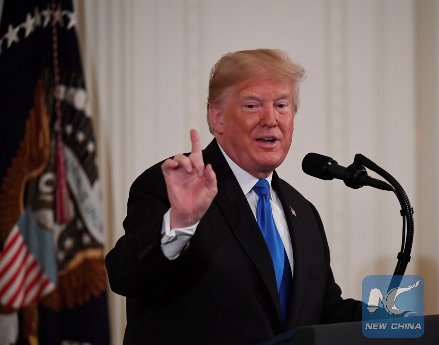 U.S. President Donald Trump attends a press conference at the White House in Washington D.C., the United States, on Nov. 7, 2018. Trump said on Wednesday that he will have lunch with Russian President Vladimir Putin among other leaders during his planned trip to Paris but no meeting was expected. (Xinhua/Hu Yousong)