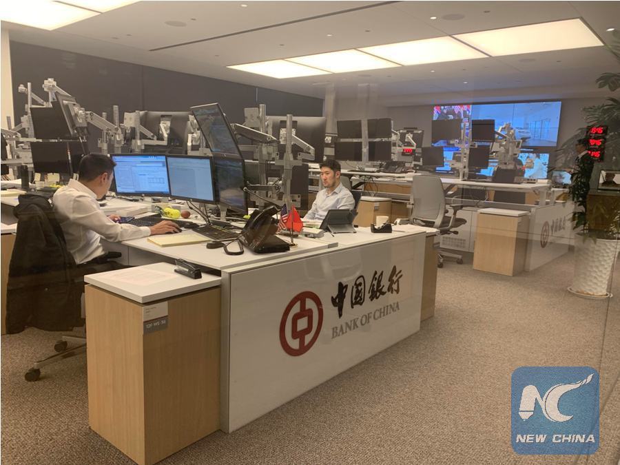 Trading floor of New York Branch of Bank of China, Dec. 28, 2018. (Xinhua/Liu Yanan)