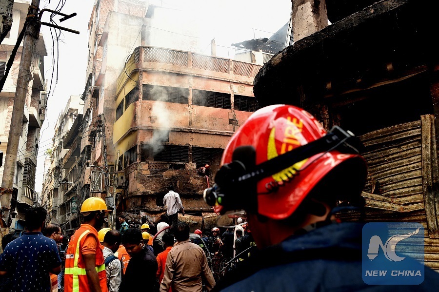 DHAKA, Feb. 22 (Xinhua) -- Flammable chemicals are believed to trigger the massive fire in the old part of Dhaka and fuelled the fire to burn longer and stronger, a member from a probe team said on Friday after visiting the site.