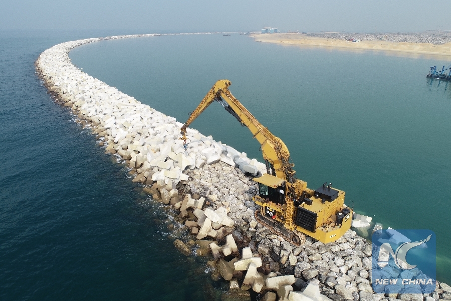 Aerial photo taken on Nov. 14, 2018 shows the construction site of the Colombo Port City project in Colombo Port City, Colombo, Sri Lanka. A China-funded port city being constructed in Sri Lanka's capital Colombo has completed the reclamation of land from the sea and will soon be ready for the second phase, China's CHEC Port City Colombo (Pvt) Ltd. said on Jan. 16, 2019. (Xinhua)