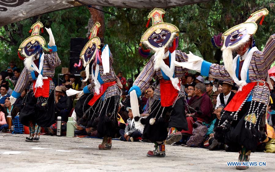 Troupers perform Tibetan Opera at Dzongyab Lukhang Park in Lhasa, capital of southwest China's Tibet Autonomous Region, Aug. 16, 2015. China will hold the Conference on Dialogue of Asian Civilizations starting from May 15. Under the theme of "exchanges and mutual learning among Asian civilizations and a community with a shared future," the conference includes an opening ceremony and sub-forums. (Xinhua/Purbu Zhaxi)
