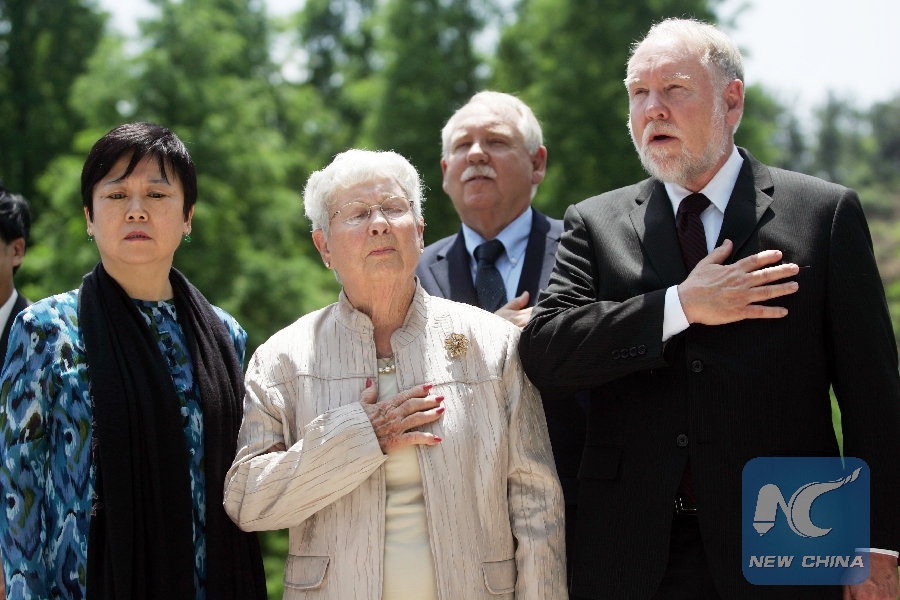 NEW YORK, May 21 (Xinhua) -- U.S. Flying Tigers veteran Glen Beneda could hardly hold back his tears when he saw the wreckage of his fighter plane shot down by the Japanese during the World War II still lying in the mud in a lake in central China.