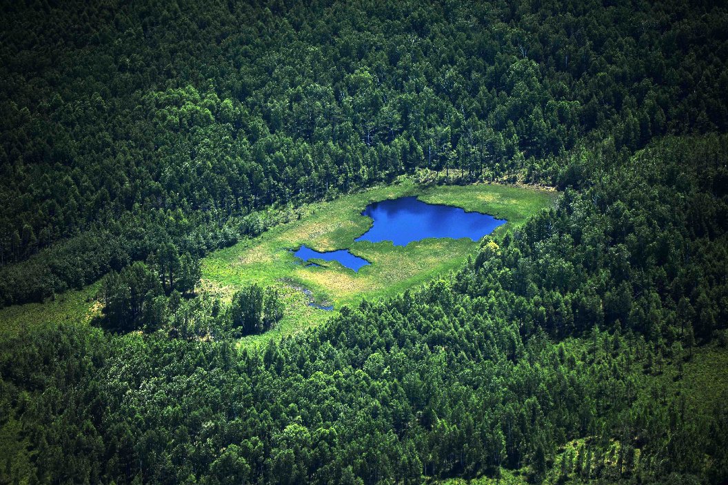 Photo taken on June 18, 2015 shows an aerial view of the Nanwenghe wetland in northeast China's Heilongjiang Province. (Xinhua/Wang Kai)