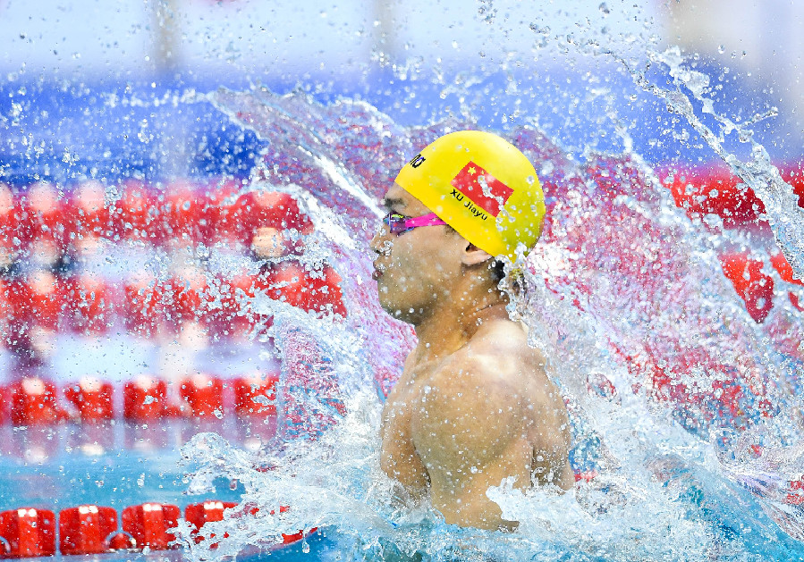 In the men's 100m backstroke, China's defending champion Xu Jiayu qualified for the final with a championship record of 52.17 seconds.
