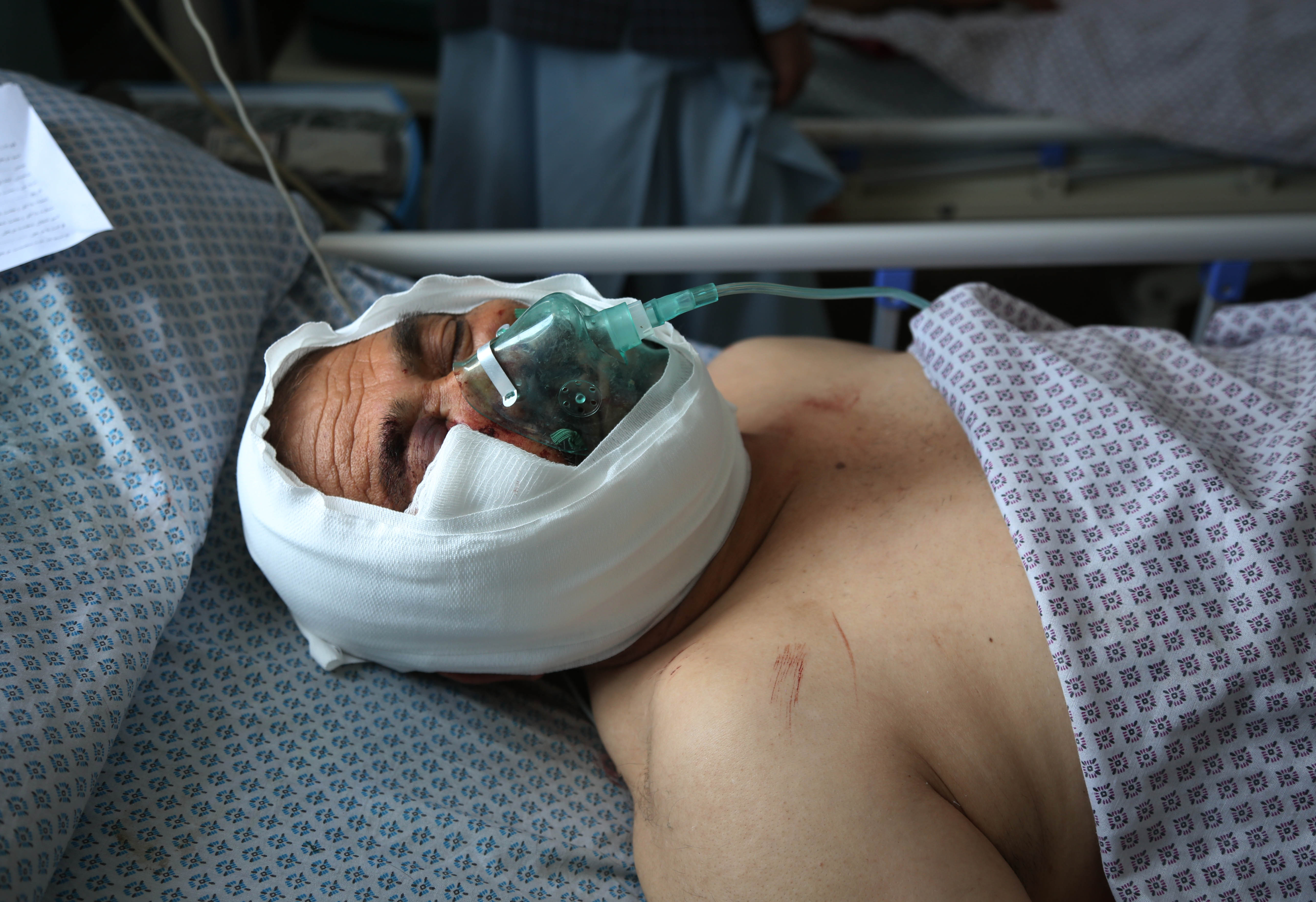 An injured man in a blast attack receives medical treatment at a local hospital in Kabul, capital of Afghanistan, July 1, 2019. (Xinhua/Rahmat Alizadah)