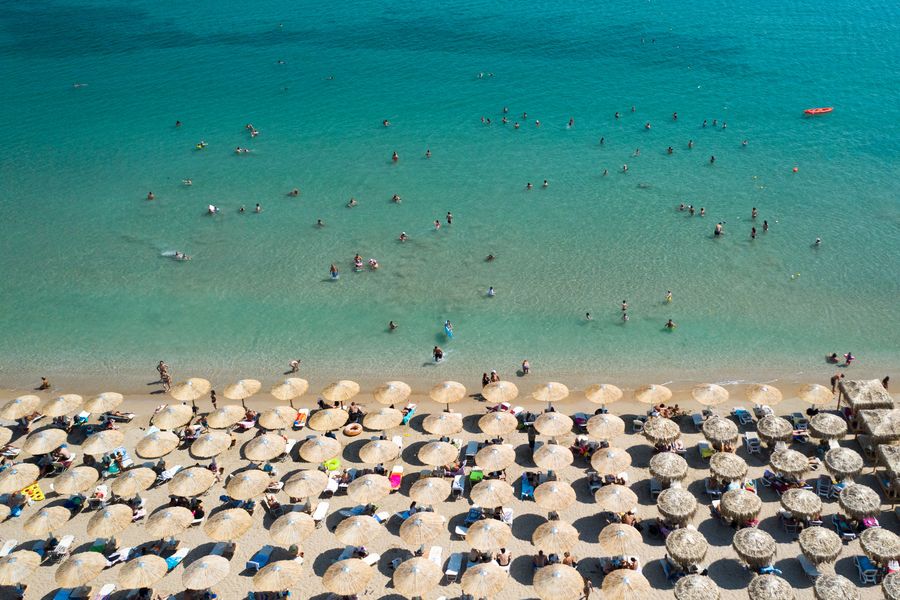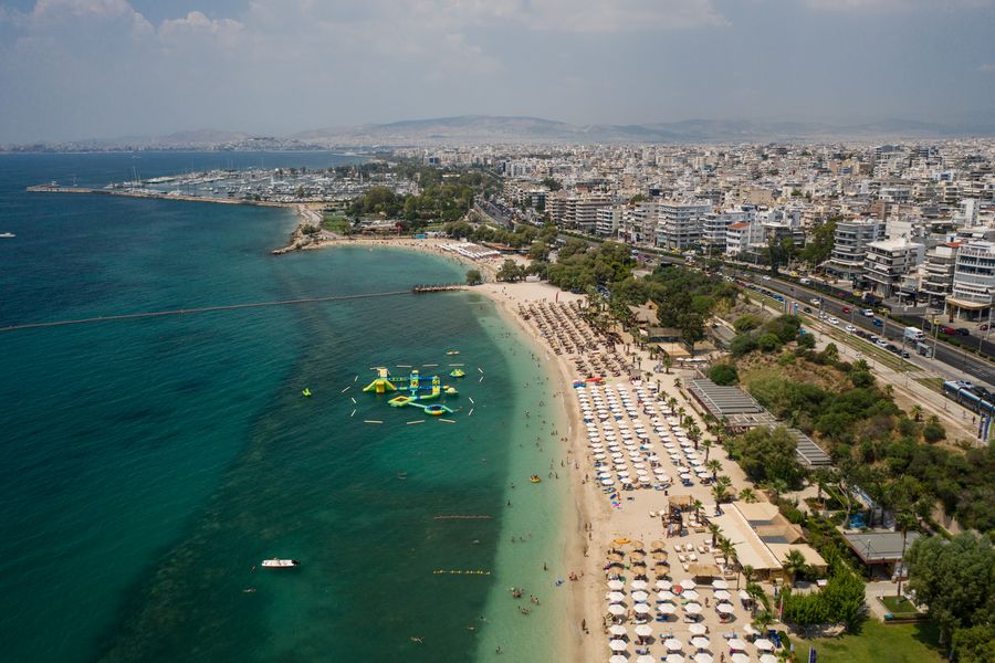 An aerial view of Varkiza, one of the largest and most popular beaches of Attica, in Athens, Greece. (Xinhua/Lefteris Partsalis)