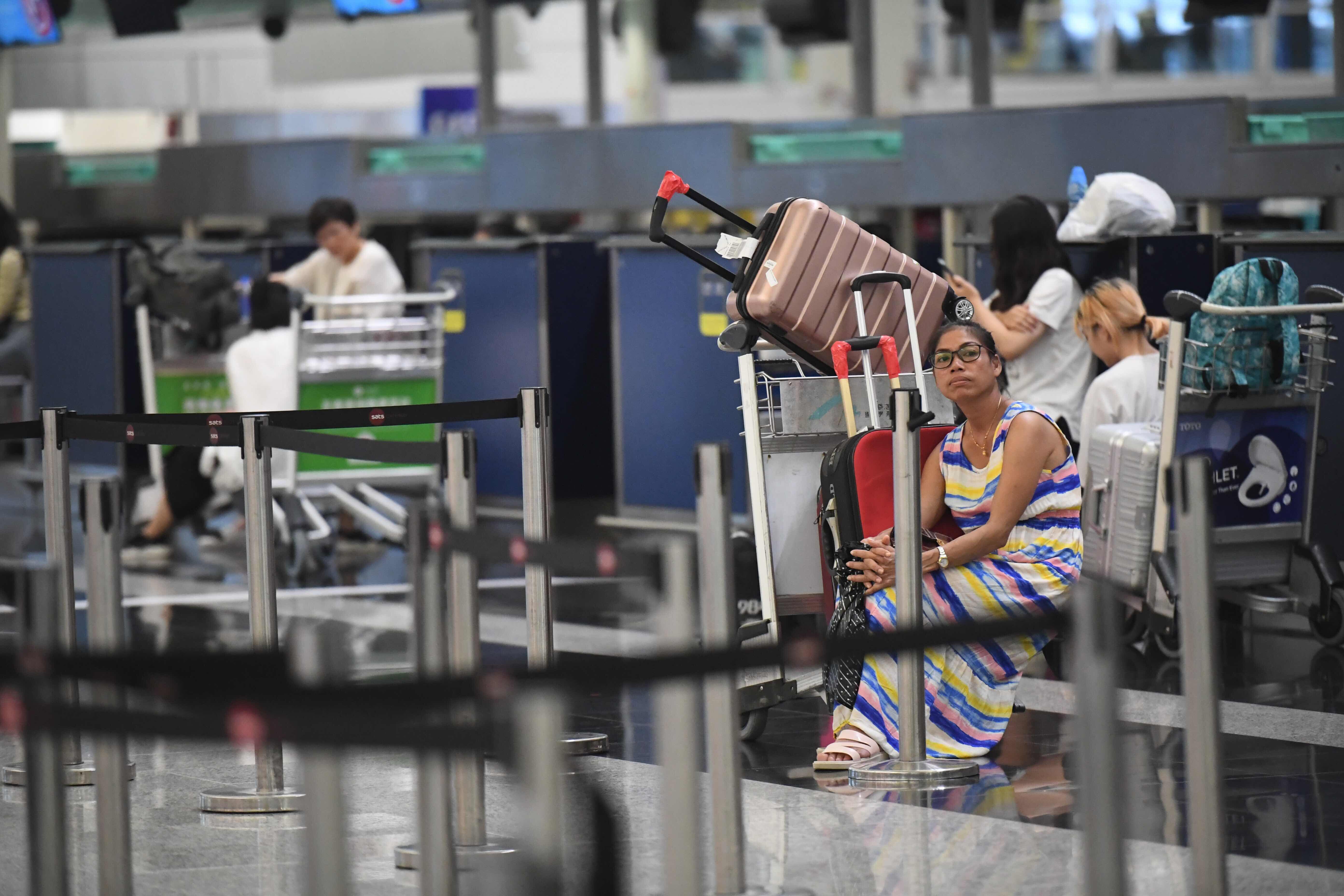 Tourists are stranded due to chaos caused by protesters at Hong Kong International Airport in Hong Kong, south China, Aug. 12, 2019. (Xinhua/Lui Siu Wai)